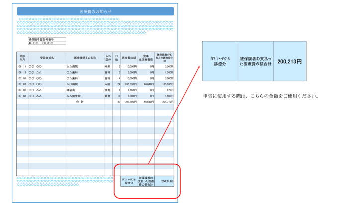 「医療費のおしらせ」は確定申告の医療費控除にも使用できます。以下の点にご注意ください。